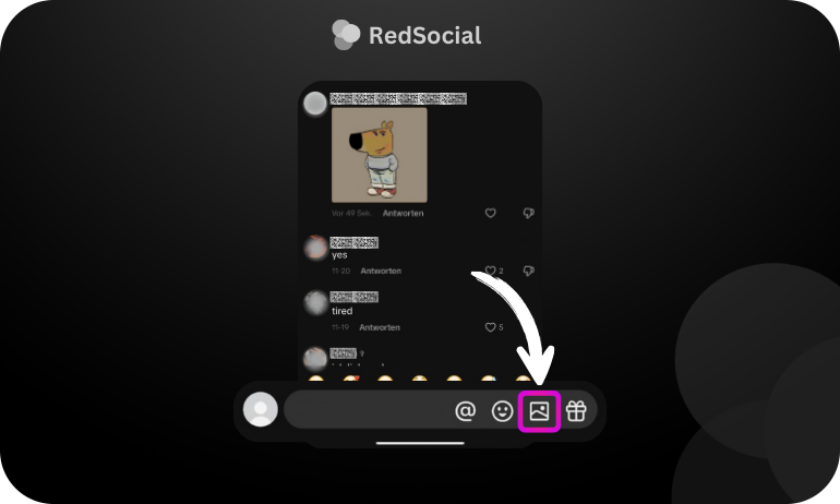 Step 2: Tap the comment bar at the bottom. You should see a row of icons — look for the photo icon next to the emoji and @ symbols. It looks like a little image frame (check the screenshot above if you're not sure).