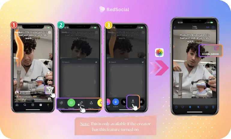- Downloading a Reel saves it directly to your phone, allowing you to watch or share it outside the app.