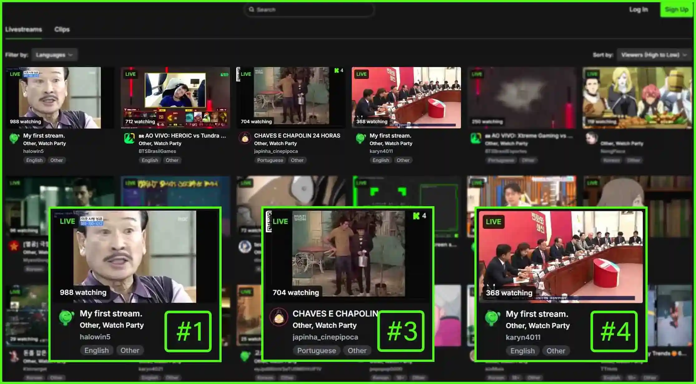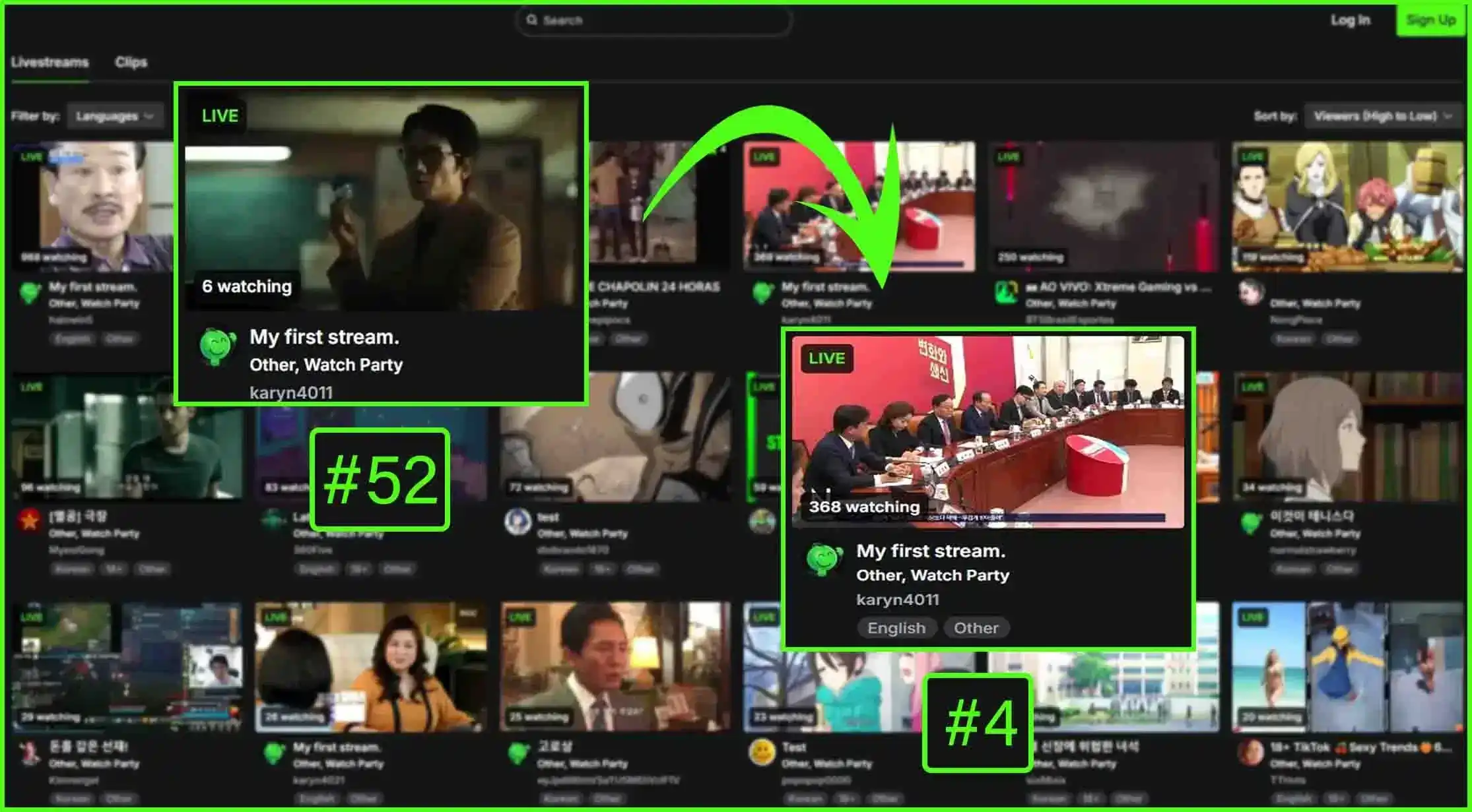 To uncover the true influence of live views on stream rankings, we tested streams at three engagement levels to see how each performed in Kick’s sorting categories. This study provides insights into how viewership volume correlates with ranking positions, offering a detailed look at what it takes to stand out in each sorting option on Kick’s platform.
