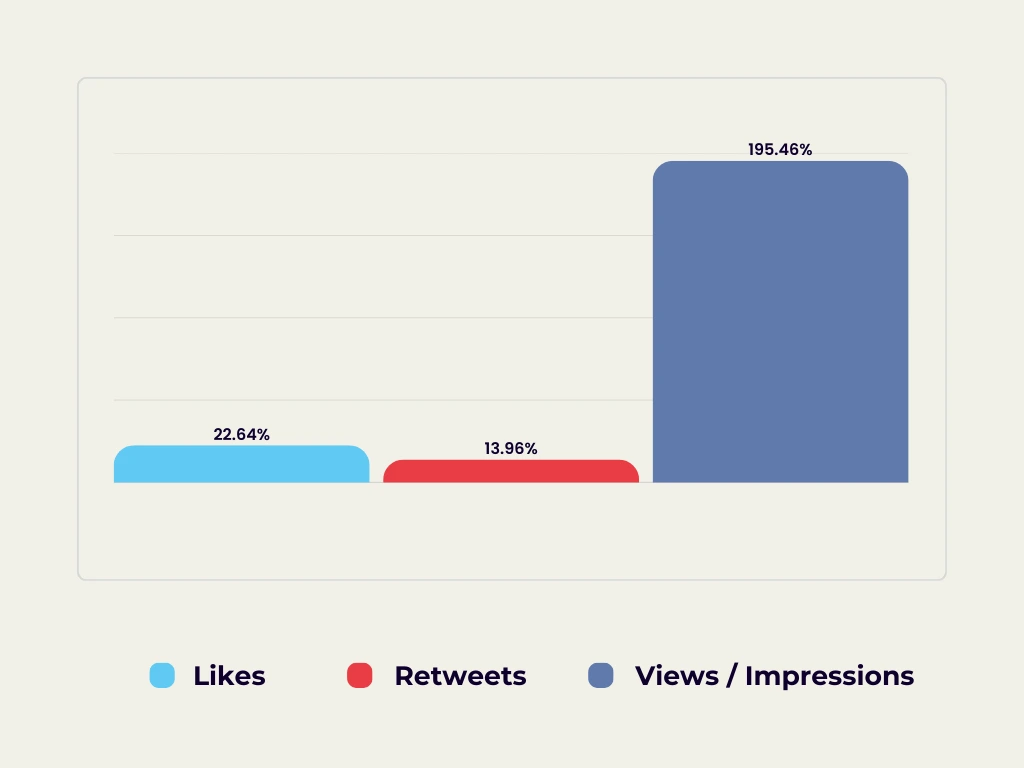 These percentages highlight the relative effectiveness of different metrics in driving natural engagement growth. While sending views/impressions had the highest impact, likes and retweets also proved to be valuable tools for fostering organic engagement when used strategically.