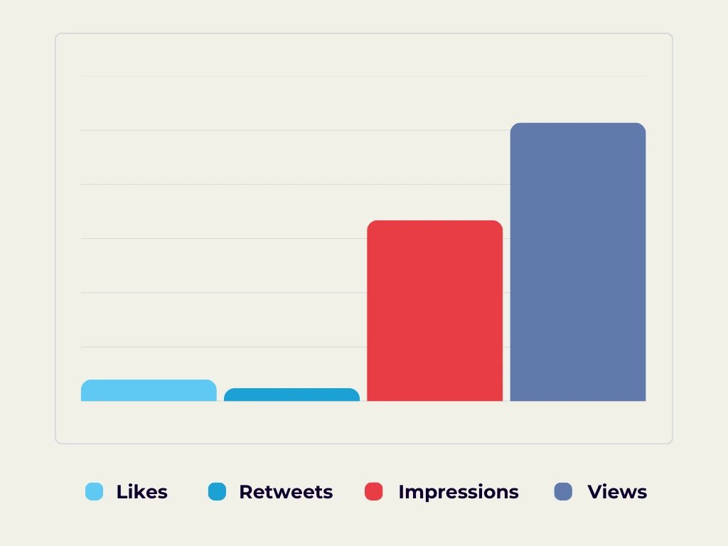 In this scenario, we tested whether increasing the amount of engagement sent to posts leads to higher natural growth in other metrics (such as views, retweets, and likes). The goal was to see if a post that receives a higher volume of likes, retweets, and impressions would naturally attract more engagement on its own.